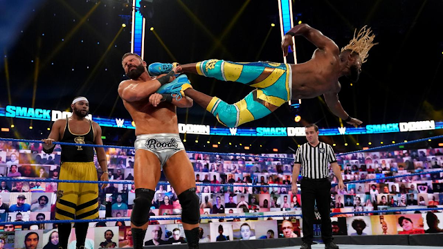 After Big E had some words for The Street Profits in a backstage segment, the rest of The New Day told The Street Profits that they'll give SmackDown tag champs the fire instead of the smoke which led to Kofi Kingston and Xavier Woods doing an Undertaker pose of some sort.